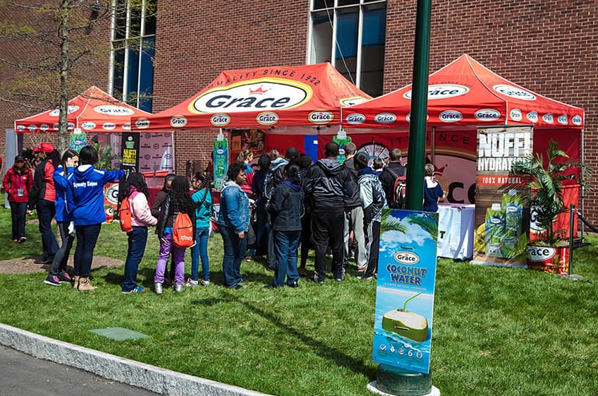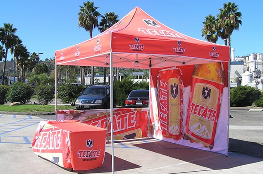We design and craft custom event tents, vendor tents and Inflatable event tents for high profile events and advertising campaigns. IDW’s portable promotional event tents are high quality, affordable and a quick way to promote your brand image on fairs, tradeshows, concerts, point of sale and more. They are simple and easy to setup and takedown. They store easily and you can take them from location to location. Our vendor and event tents are available in: 10×10, 10×15, 10×20, 20×20 sizes. They are constructed with premium quality steel frames, textured powder coated or aluminum Hex frames, and they come with a 600 denier polyester canopy fully printed by dye sublimation with UV inks for long durability.